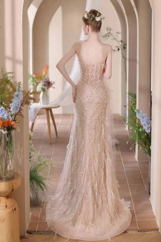 Cream Sequin Tube Long Gown