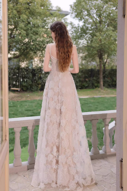 White Flower Long Gown