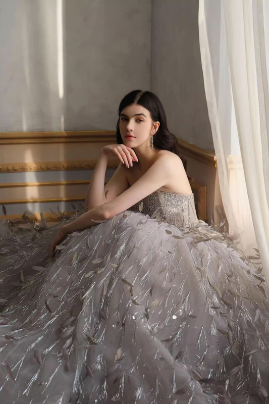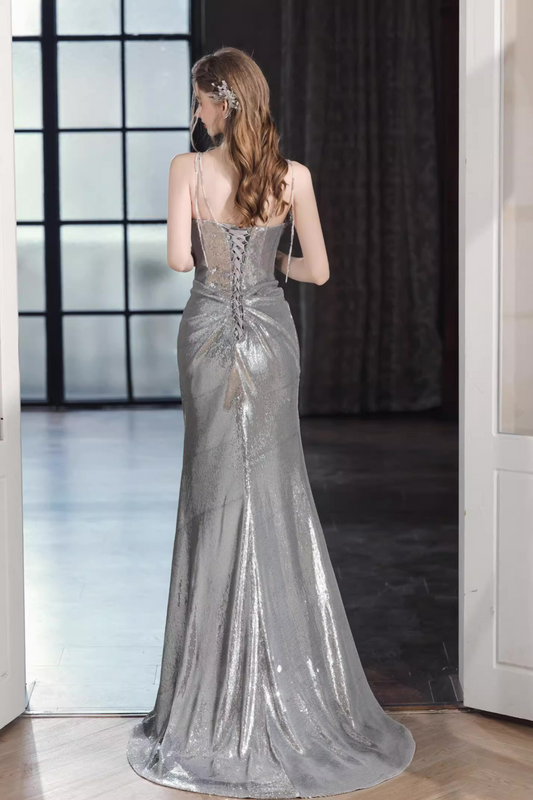 Gray Fairy Sequin Long Gown