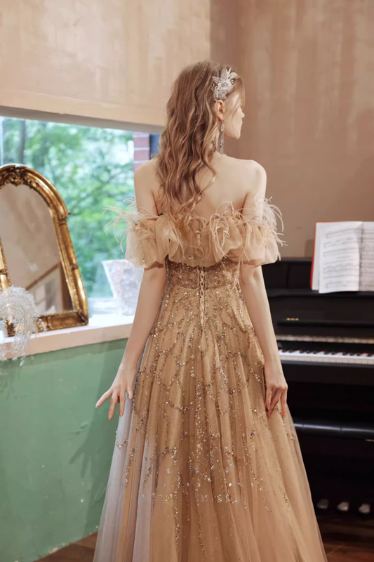 Brown Sequin Fur Long Gown