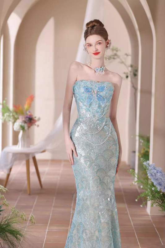 Blue Ocean Sequin Long Gown