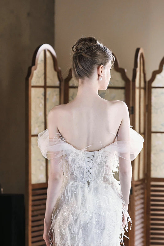 White Sequin Fur Long Gown